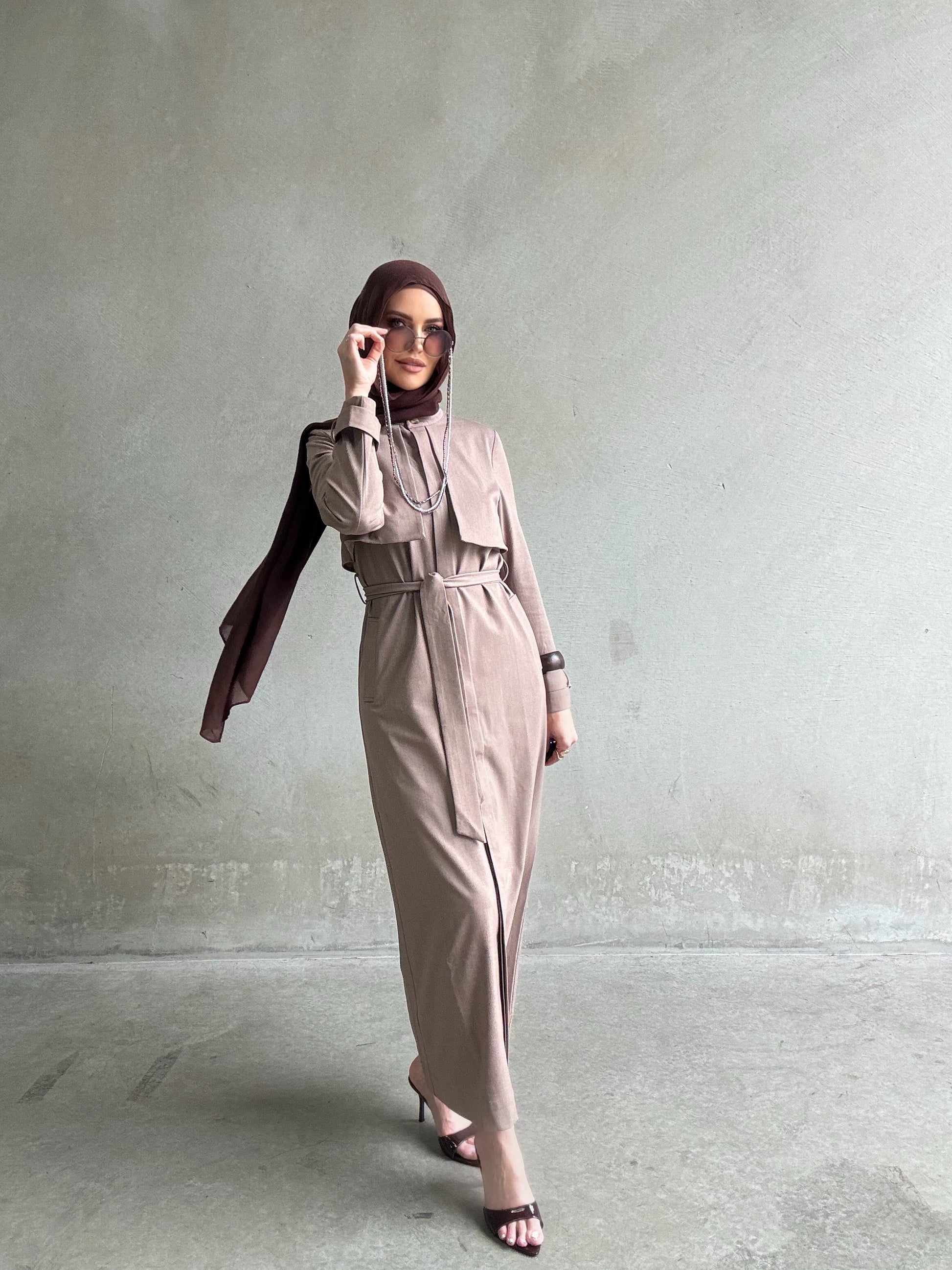 Featuring discreet hidden buttons that run the full length, and side pockets. Bella trench dress offers adjustable coverage and effortless styling. Whether you're dressing it up for a night out or keeping it casual for daytime, this timeless piece is a must have for every wardrobe.